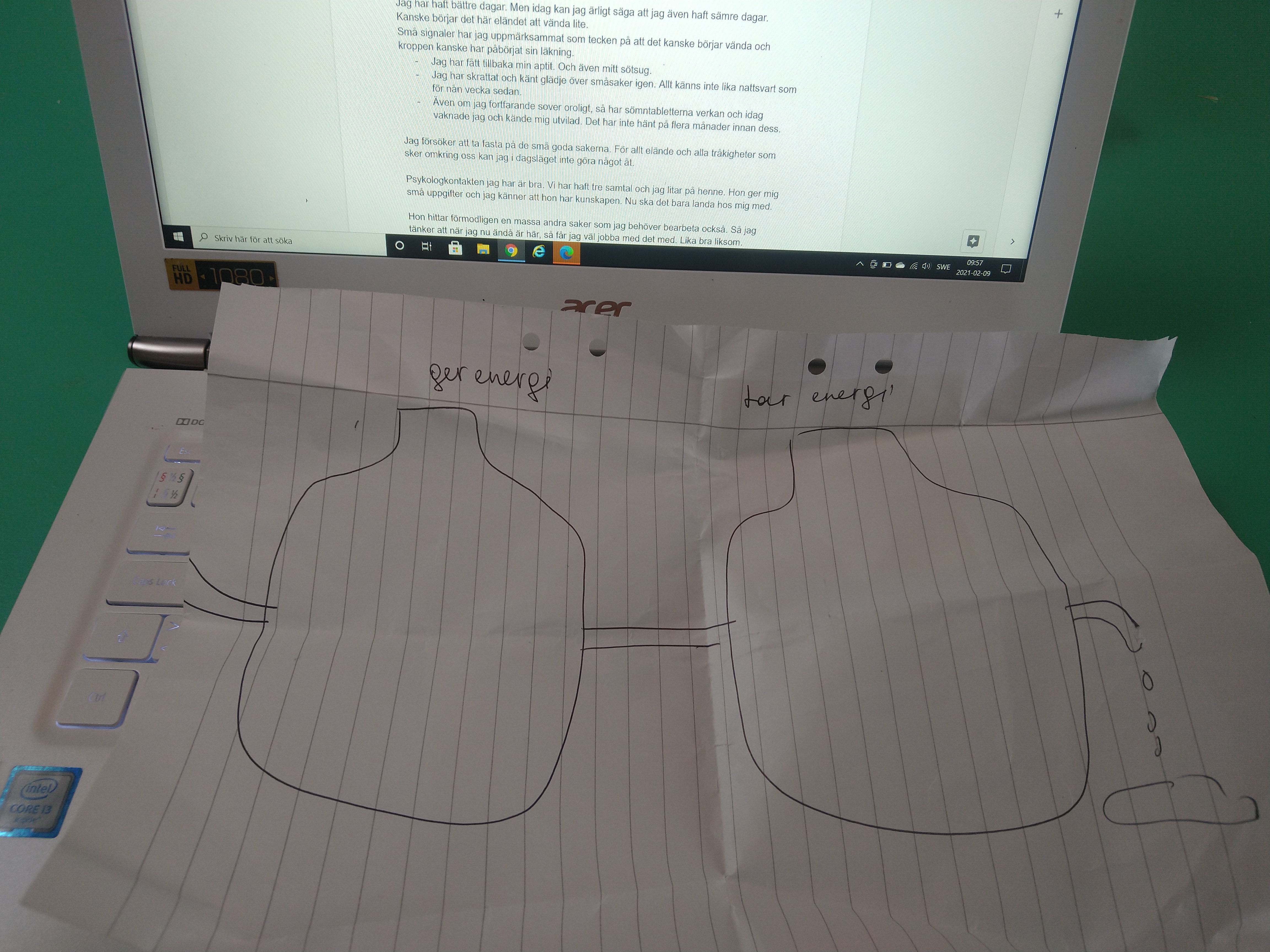 Min första uppgift var att reflektera kring det som ger energi och det som tar energi.